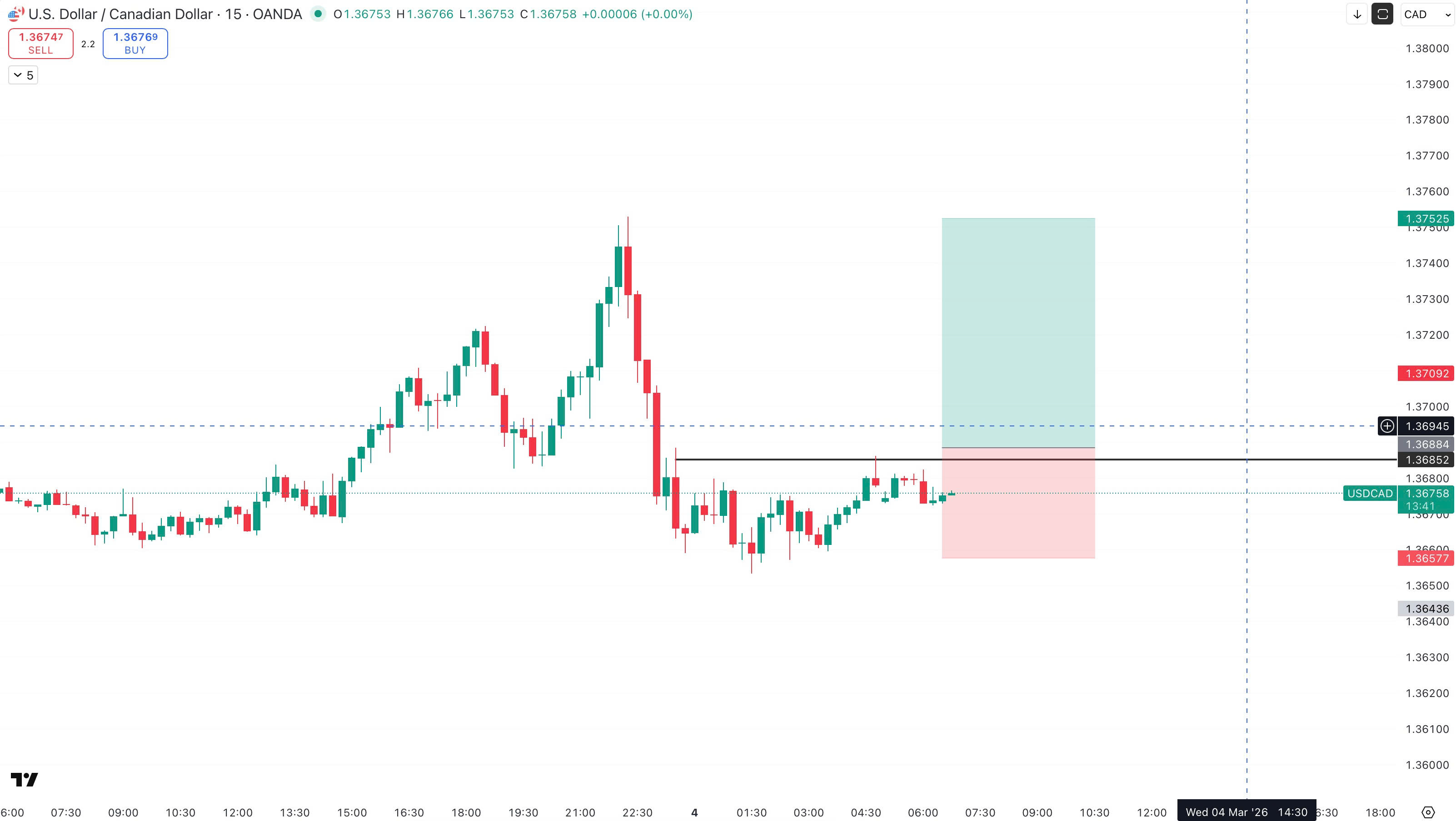 止损 (Stop Loss): 1.36600