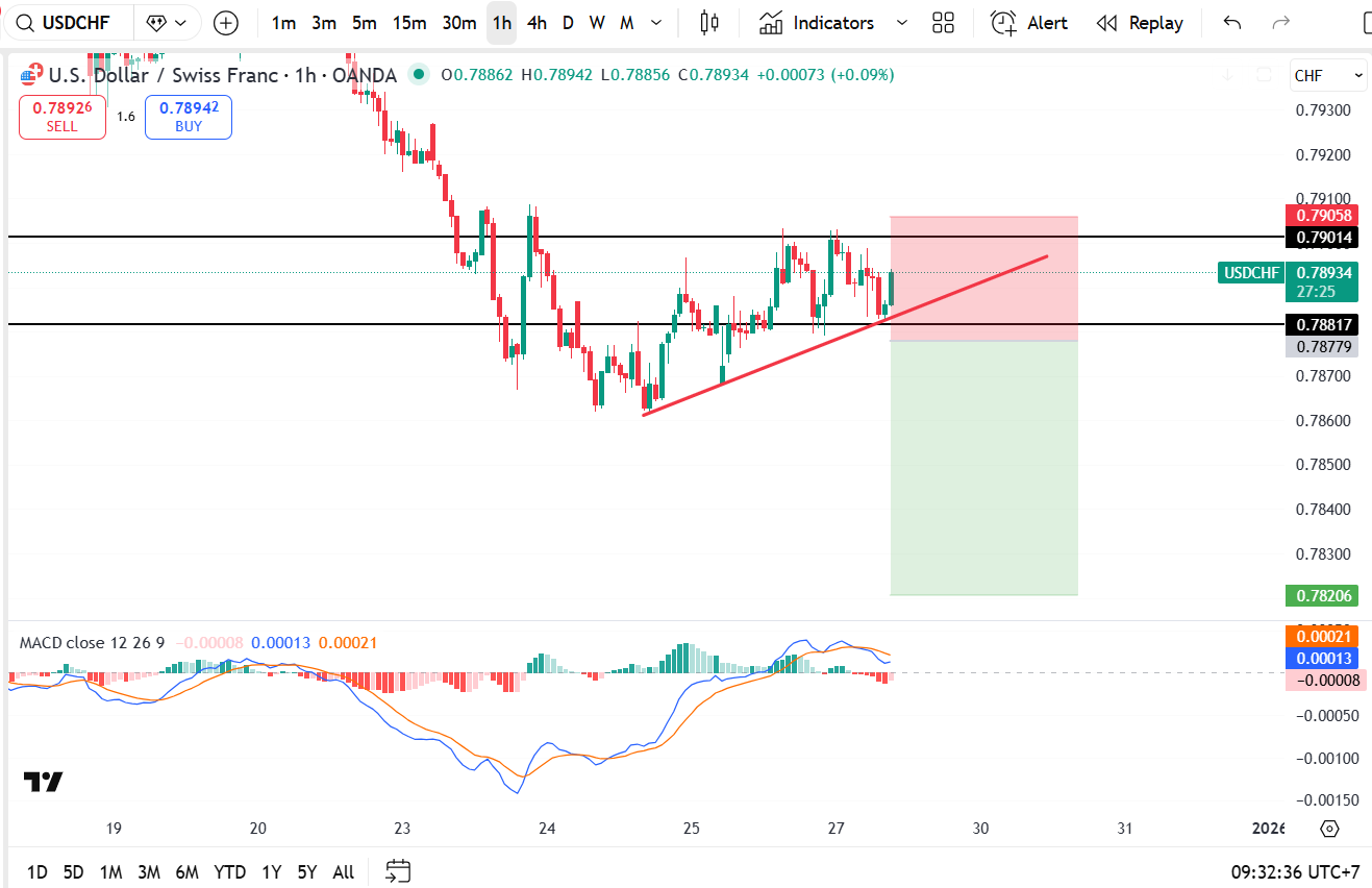 Sell Stop ở 0.78800, dừng lỗ 0.79000, chốt lời 0.78200