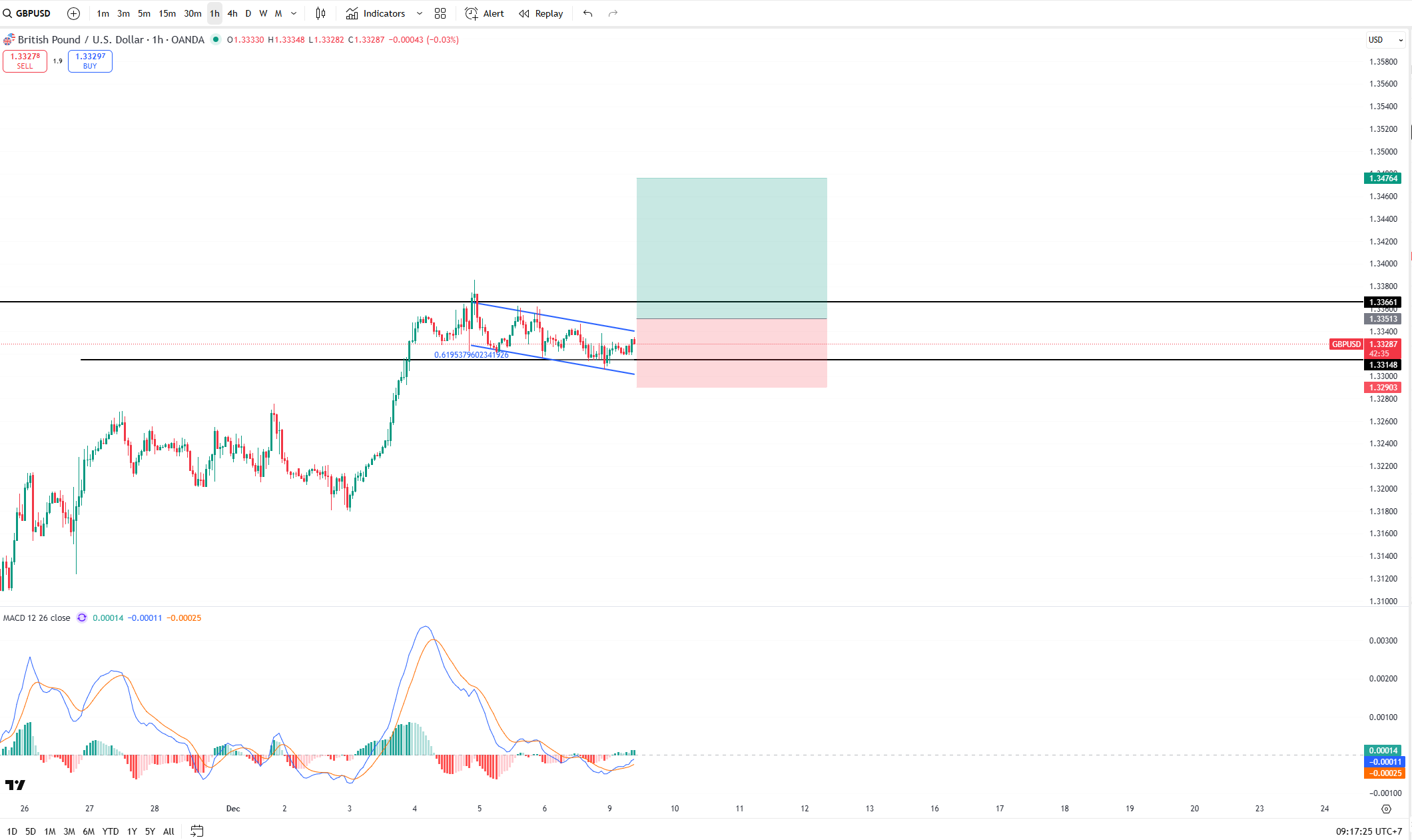 Buy Stop ở 1.33510, dừng lỗ 1.32900, chốt lời 1.34700