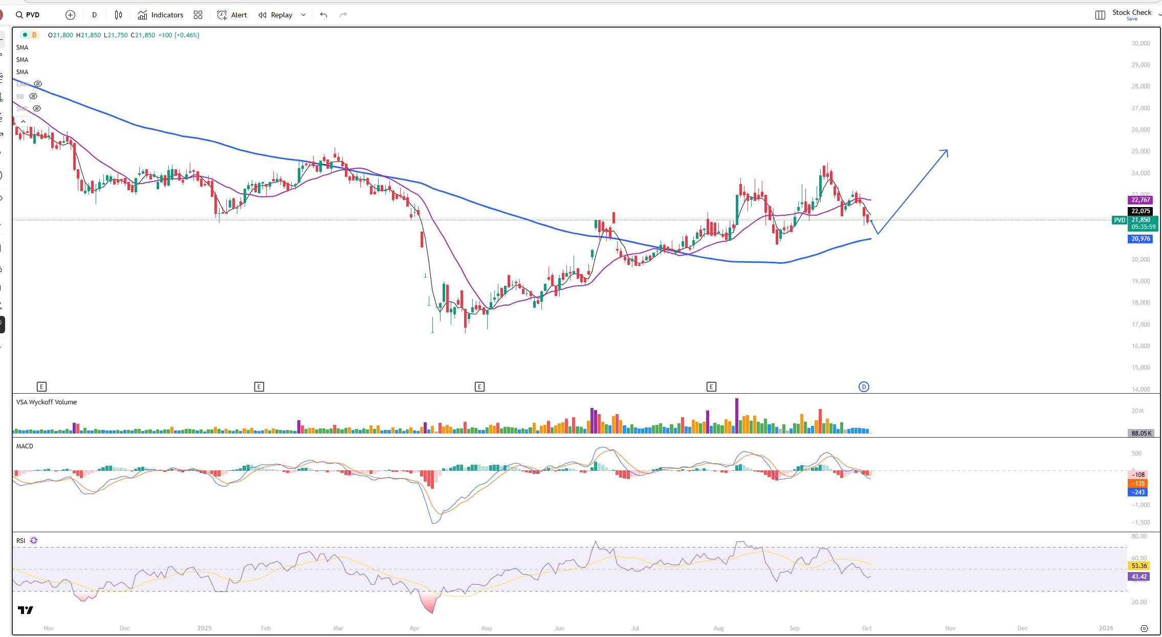 建议买入 PVD(2025/10/02),买入区间:21,200 – 21,800 VND