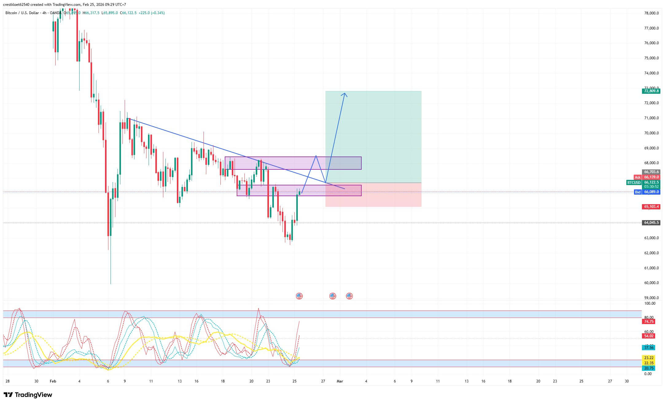 BTC: Buy Stop @ 67,200 | SL: 65,000 | TP: 73,000
