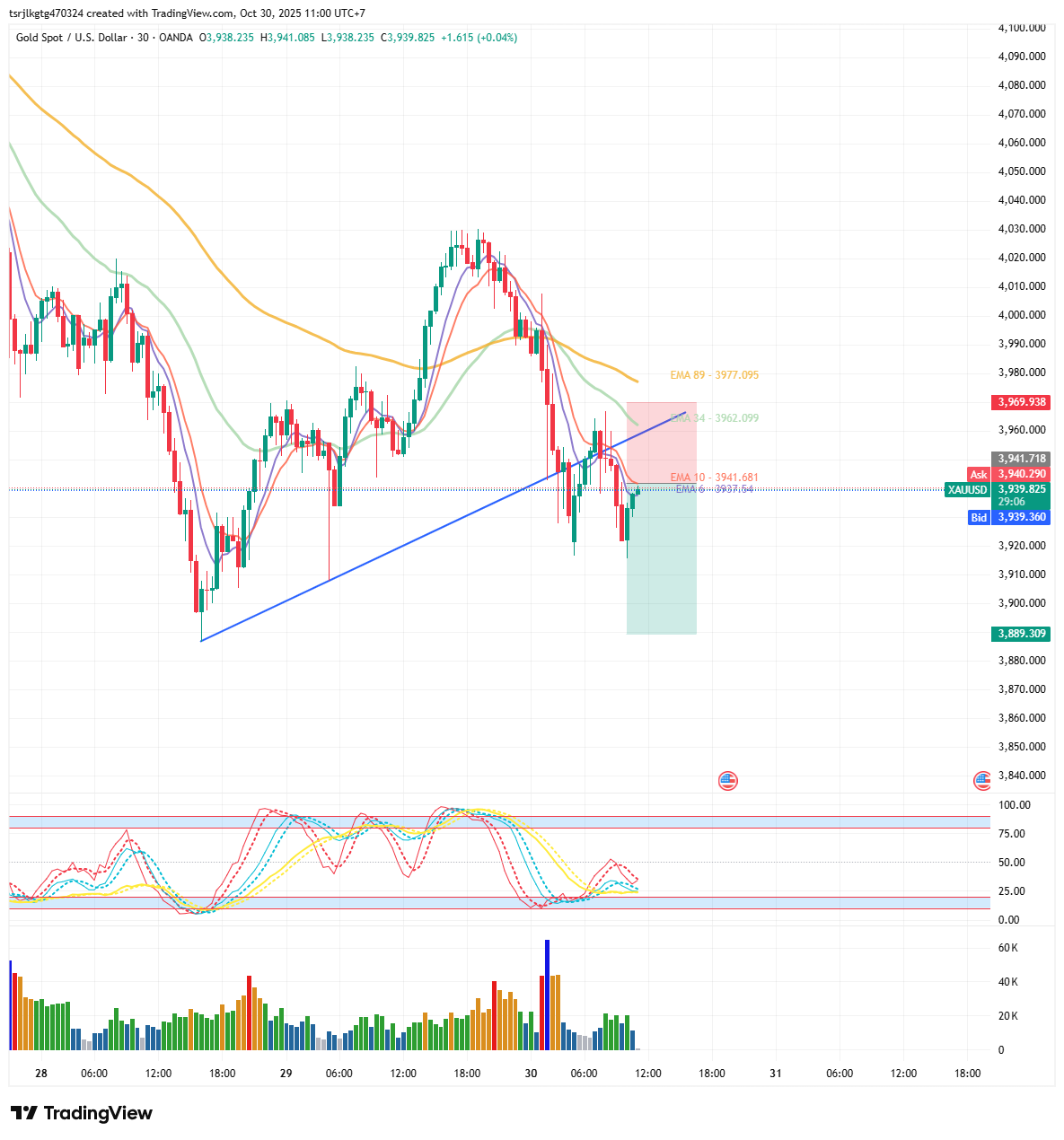 U.S.: On 29/10/2025, U.S. markets moved divergently: the Dow Jones Industrial Average fell about 0.2% to 47,632; the S&P 500 was virtually unchanged at 6,890.59; the Nasdaq Composite rose about 0.5% to 23,958.47. The Federal Reserve cut interest rates by another 0.25 percentage point to 3.75%–4.00%, marking the second cut this year. The U.S. equity market responded with light gains but remains cautious as employment and inflation data are not yet clear enough to confirm a long-term upward trend.