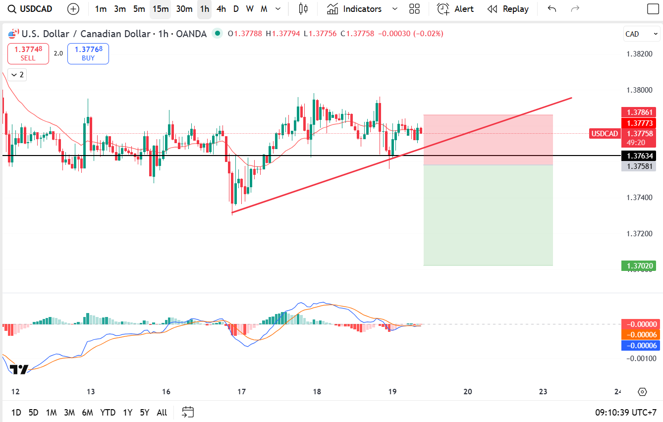 USD/CAD: Sell Stop at 1.37600, SL 1.37900, TP 1.37000.