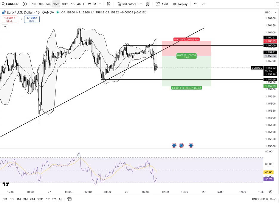EUR/USD main trend is ranging, daily resistance at: 1.16000, daily support at: 1.15800. A short position can be entered when the price breaks the daily support zone.