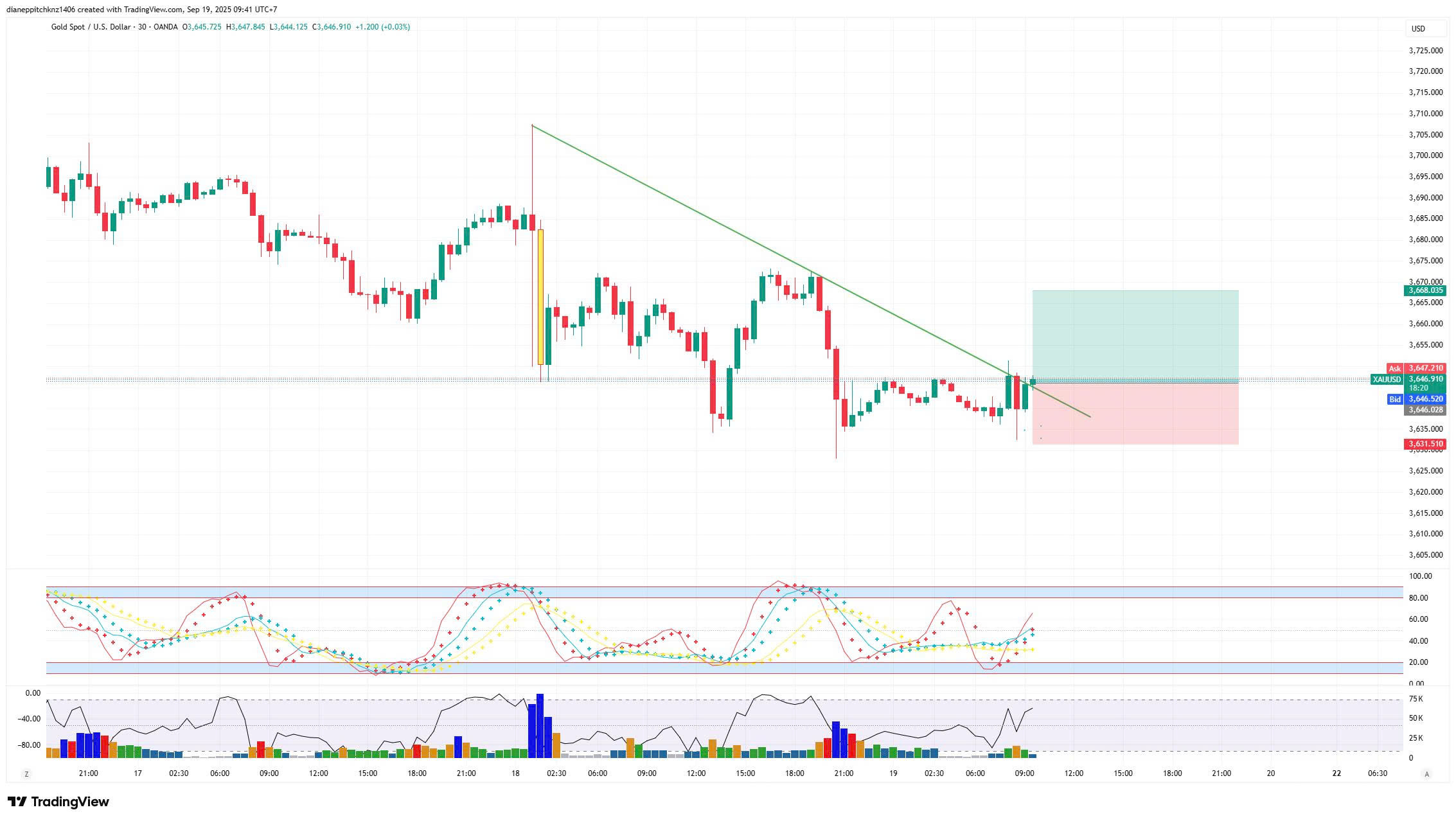Gold eased slightly as the USD strengthened and after Powell’s comments following the Fed meeting. Spot gold is currently around $3,655.10/oz, slightly lower than the earlier peak of $3,707.40/oz. December futures also declined by about 0.8%. Deutsche Bank has raised its 2026 gold forecast to $4,000/oz, stating that most indicators point toward an uptrend, outweighing short-term correction risks.