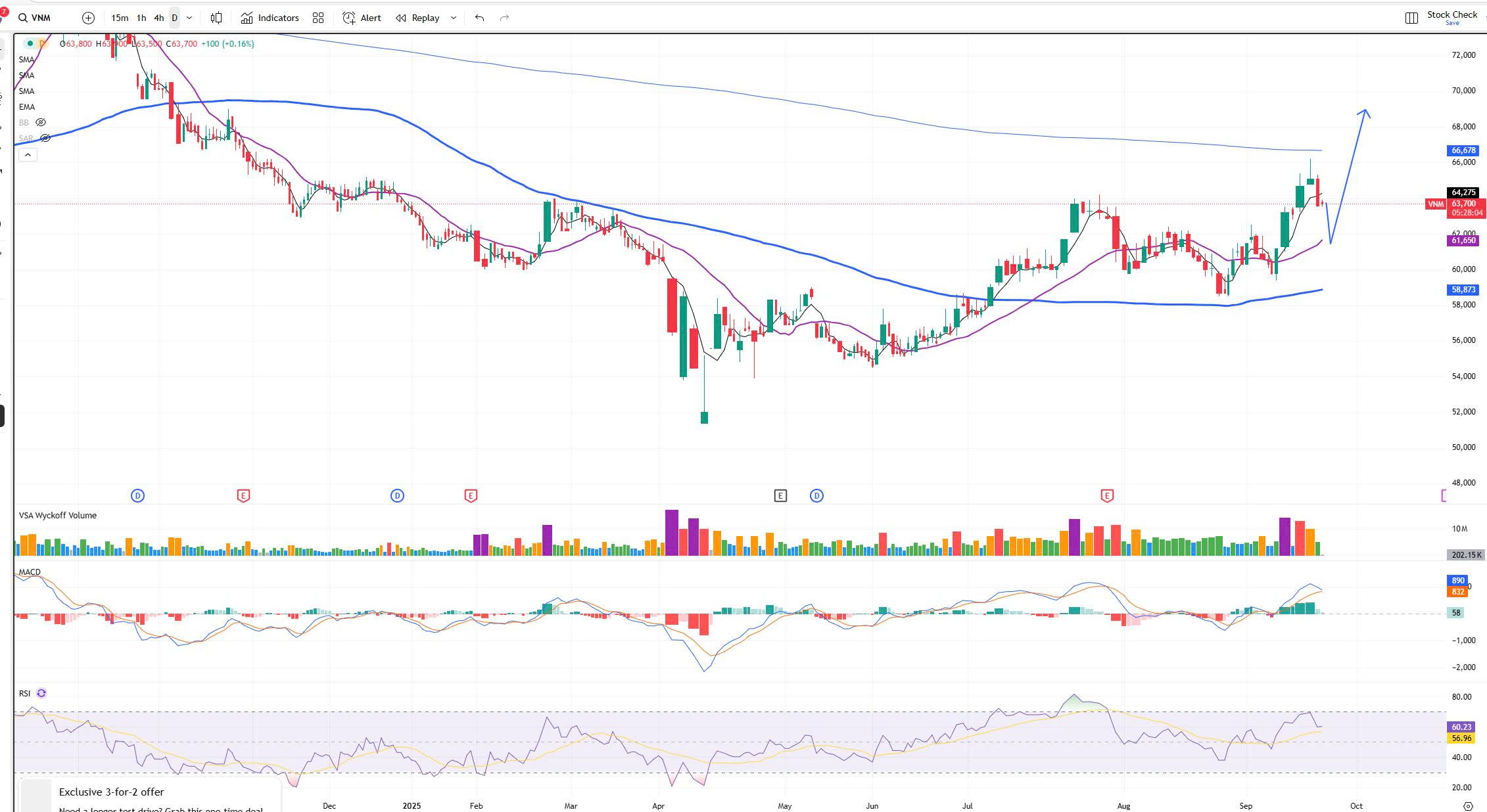 Vietnam Market: The market continued to retreat but still held above the MA(20) around 1,663 points, reflecting a cautious trend under pressure from the previous peak zone. Declining liquidity shows weakening support from cash inflows, while supply pressure is not yet significant. The market is expected to continue testing the MA(20) area in upcoming sessions. To regain balance, stronger absorption from capital inflows will be needed.