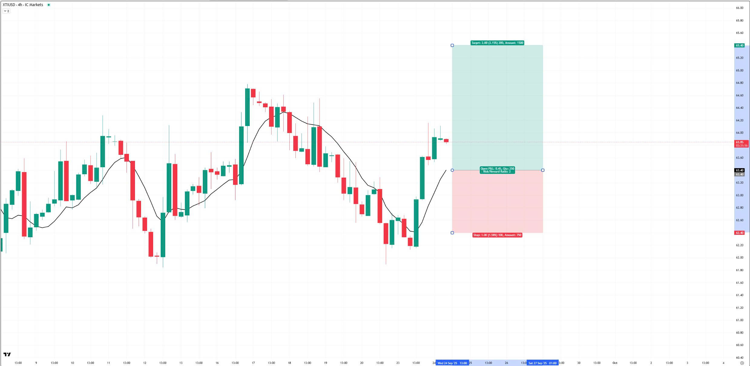 Entry: 63.40 | Stop loss: 62.40 | Take profit: 65.40