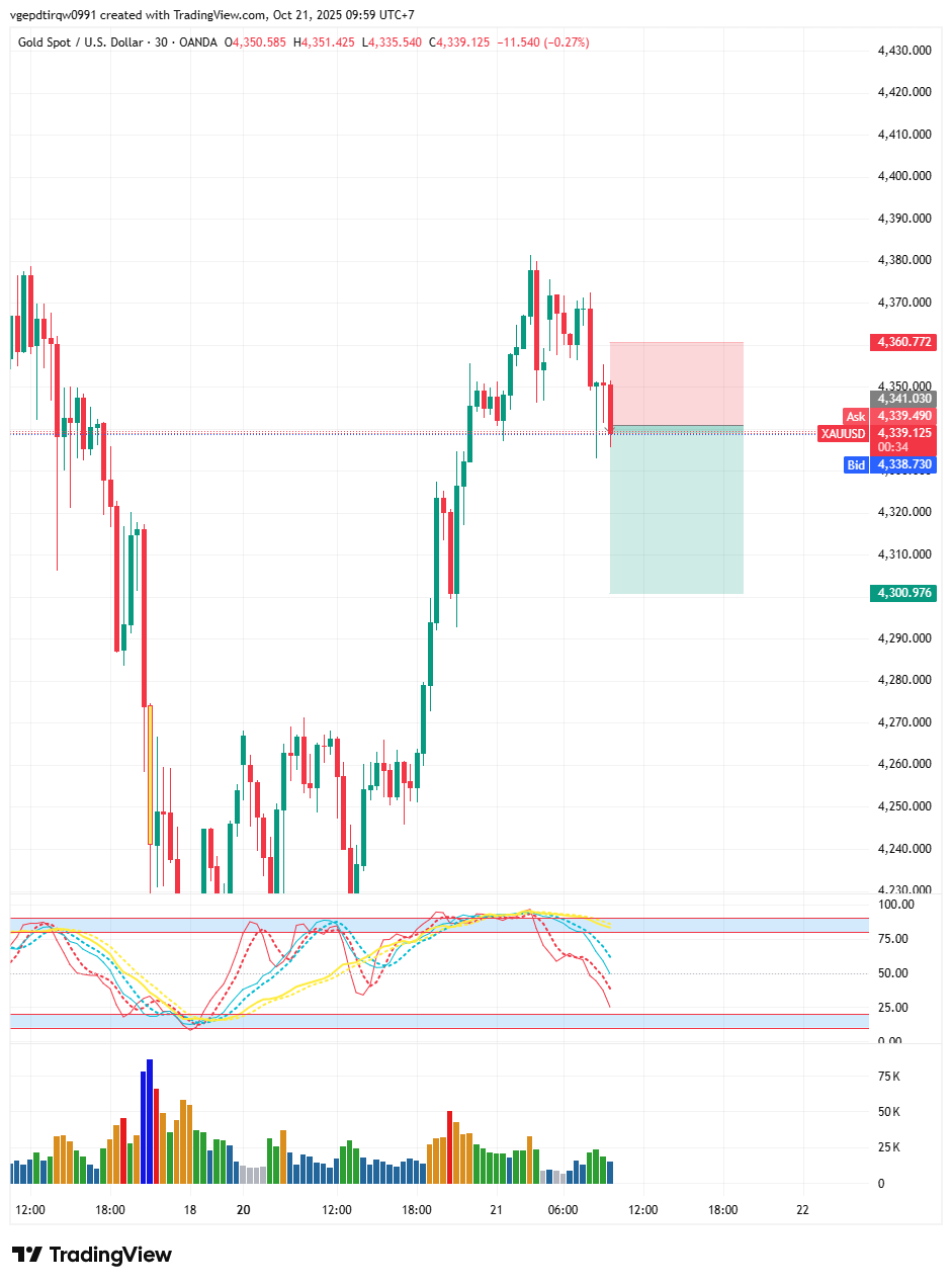 Action: Sell at 4,340 — Stop loss 4,360 — Take profit 4,300